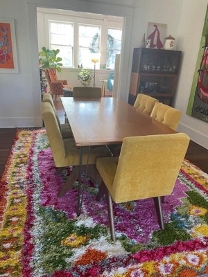 Beautiful rug. Smells Like A Car Shop Though, Really Strong Chemical smell But Its Really Bright And Definitely a Statement piece