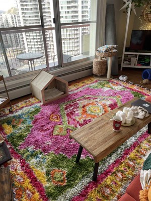 I bought this gorgeous rug during a sale over the summer for my apartment. I love that this site constantly has deals and it arrived pretty fast (it was packaged and sealed nice and tight for travel too). The amount of compliments I have received on this rug is countless and the colors are as vibrant as pictured. This rug has been super easy to keep nice and if you’re even thinking about it, just do it… it’s the perfect statement piece for a room! The only reason I gave this rug 4/5 stars would be because the braided tassels on the ends of the rug have come undone because of traffic over them… I have had to braid each tassel multiple times in order to keep the rug nice and prevent a knotted/frayed look of the fallen out tassels. I’m not sure how to prevent this but this was the only disappointment I’ve had with this piece. I feel as though the pros out way the cons, but because of the price it is something to consider!