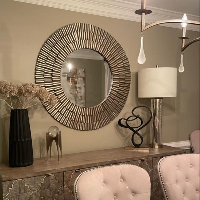Wood Starburst Wall Mirror Silver - Olivia & May: Rustic Style, MDF Frame, No Assembly, 41.5" Diameter