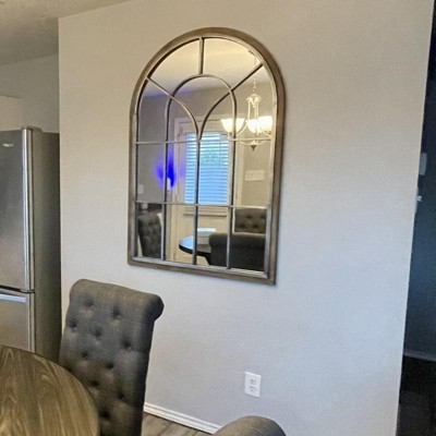 Glass Window Pane Inspired Wood Wall Mirror with Arched Top Brown - Olivia & May: Distressed Whitewash Finish, No Assembly Required