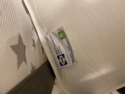 Great mattress. Double sided indicating which side is infant and which is toddler