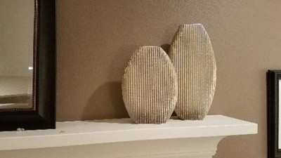 Set of 2 Oval Textured Metal Vase White/Gold - Olivia & May