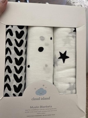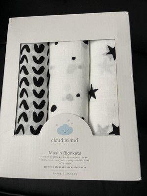 Muslin Swaddle Blanket - Cloud Island™ - Black/White - 3pk: Cotton, 47"x47", Shapes, Art and Design