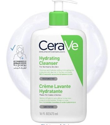 submitted byCD - 1 year agoA: Hi There! Thank you so much for asking about our CeraVe Face Wash, Hydrating Facial Cleanser for Normal to Dry Skin. Created with dermatologists, CeraVe Hydrating Facial Cleanser is a gentle face wash with ingredients like ceramides and hyaluronic acid that work to restore the skin’s natural barrier to help the skin lock in moisture. This product is Non-comedogenic, non-irritating and fragrance-free.