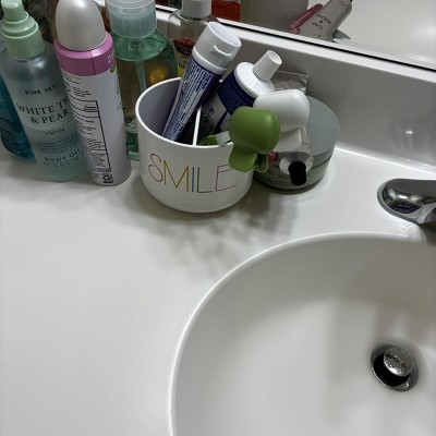 Cute! Got for my kids’ bathroom. Love that it’s neutral. Fits several toothbrushes and toothpaste.