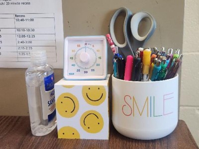 I use this to hold pens, etc, on my desk at work. I work at an elementary school, so it's perfect.
