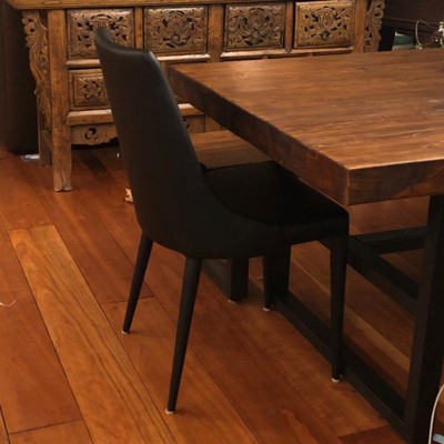 I purchased 6 of these chairs. I’ve had them for more than 2 months now and have no complaints at all. The leather is supple and easy to clean. The silhouette is perfect and exactly what I was looking for, and coordinates nicely with the table we have (Griffin dining table from PB). The chairs aren’t flimsy. These are comfortable for my whole family. It was nice that they are fully assembled.
