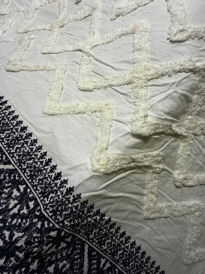 - Farmhouse cotton comforter set with tufted white chevron chenille