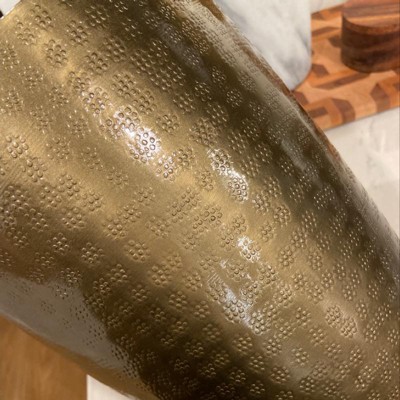Amp up your bathroom decor while keeping your space clutter-free with this Hammered Metal Waste Can from Threshold™. This aluminum metal waste can features a hammered design to add a sophisticated and antique-inspired look to your bath space. A great mix of function and style, this hammered waste can comes with a open top for simple disposal of your garbage. Coordinate with other pieces from the same collection for a complete look in your bathroom.