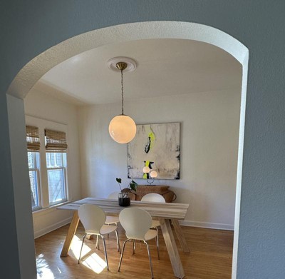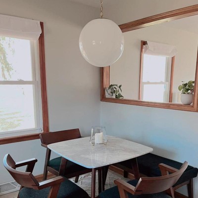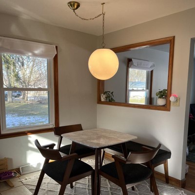Love love love. The first one did come scratched on the gold part and with some blemishes on the glass globe part as well. The second one I ordered was perfect. I love how it looks and it gives such a cozy dining room vibe with a pretty glow. It is large and impactful!