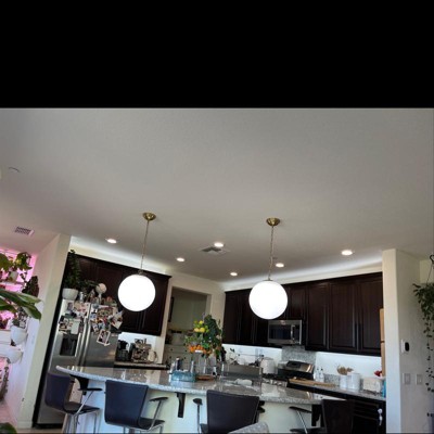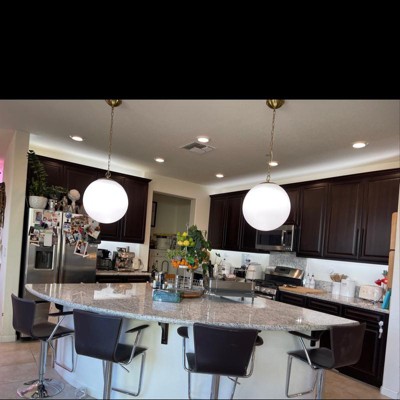 Guests appreciate the modern and oversized design of these pendant lights, which add a stylish touch to various spaces like dining rooms and kitchens. The smooth glass texture and matte gold finish enhance their appeal, while many find them easy to install. However, some guests noted inconsistencies in quality and size, suggesting careful measurement before purchase. Overall, they are seen as a great value for their aesthetic impact and quality.