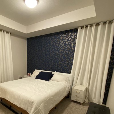 This stick on wall paper has completely transformed my bedroom! I will admit up close it doesn’t look perfect for a couple of reasons. I put it over textured walls so of course you can see that which doesn’t bug me. I gave up on the lines matching up early in installation, but it still looks really good and no one notices. The installation was super easy and quick and cost was significantly cheaper than most when shopping around. My biggest warning is that it easily scratches. When installing, I’d recommend against any motions that would scape because it will show. Overall, it looks so good and so easy to install so I would recommend if you can deal with it not being 100% perfect.