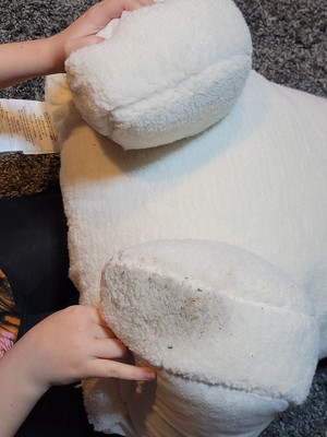 • Faux shearling bed rest pillow with an oblong body and outstretched arms