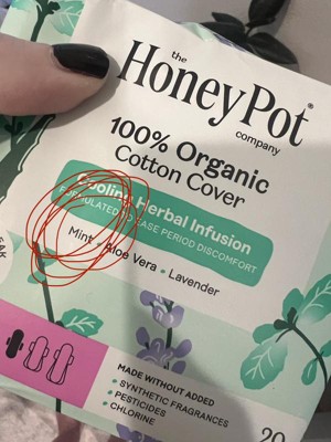Honey Pot 100% Organic Cotton Cover Cooling Herbal Infusion Regular Liners - 30 ct