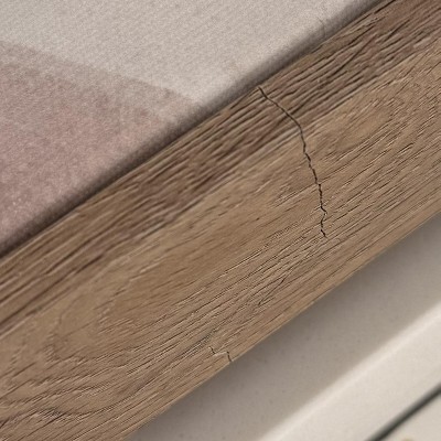 Love this as a pair- purchased two for our main bedroom. Easy to remove/replace hardware & flip one upside down for a different look. Neutral & goes with a variety of decor. Nice light brown frame.