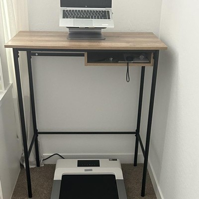 Add functional style to your office space or study area with this Standing Desk from Room Essentials™. This compact standing desk features a clean-lined silhouette with a metal base to give your space a stylish look. The drawer offers out-of-sight storage for files, folders and office supplies, while the spacious desktop provides a perfect platform for your laptop and accessories. Place this standing desk along the wall to complete your home office setting.