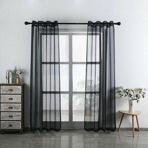 2 Pc. Designer Sheer Voile Grommet Top Window Curtains - 90in. Black