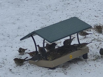 The feeder seems very bird friendly. It's sturdy and open so you can see the birds.