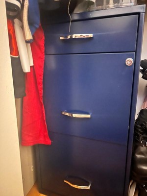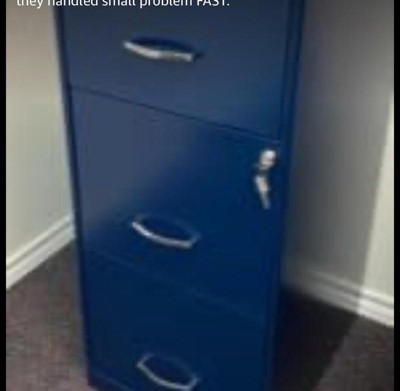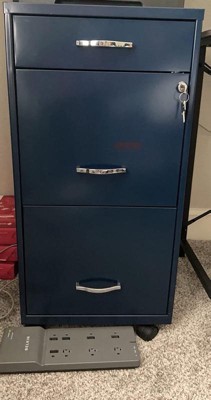 [This review was collected as part of a promotion.] I have been looking for a filing cabinet for quite a while. Some of them I looked at were not very sturdy, and others didn’t have the drawer . I knew that I wanted it to be a metal cabinet and I knew that it had to have a drawer. I really do like this seems to be a very sturdy filing cabinet . the drawers glide easily and it’s a dark blue color that fits in well with my decor. The size is about the same size as my home office desk and it works perfectly for my needs. I would definitely recommend buying this filing cabinet.