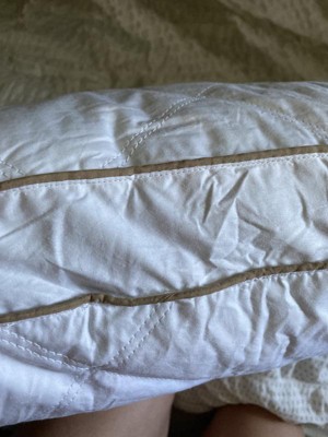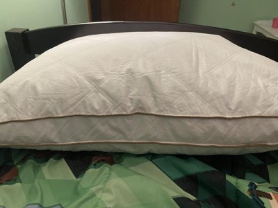 These pillows are OKAY. Not bad for guest pillows, but not my favorite for myself every night. They’re fluffy and comfortable, but made of a material that is kind of stiff and noisy- even under a pillowcase it was noticeable to me. They did stay fluffy after sleeping on them and had a nice size and shape, but it was hard to feel like this was “my” pillow.