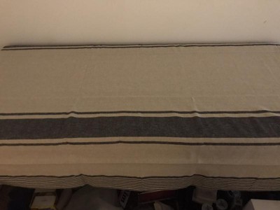 [This review was collected as part of a promotion.] I don't use tablecloths often but some holidays or get togethers feel as if the table would look or remain cleaner with the help of a tablecloth. This cotton tablecloth with the banded design is made well, to last more than a few washings and it looks good, like I spent money on it..like its almost too nice for the casual get together. I love it. Might use tablecloths more often.