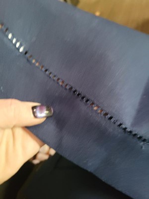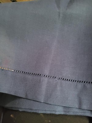 [This review was collected as part of a promotion.] This beautiful blue Hemstictched border Table runner can make any Table look elegant. I love the hemstitch border. It looks great on a dinner table to a coffee table. With that material being polyester it cleans up very easy.