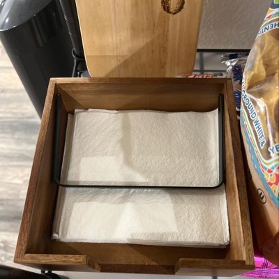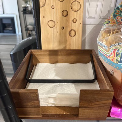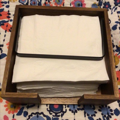 Wood Napkin Holder Black - Threshold™: Freestanding Light Brown Tray for Table, Spot Clean, 7.5"x7.5"x3"