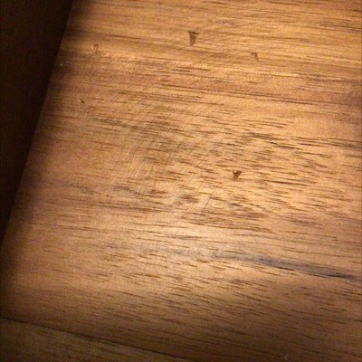 Great price and good weight to this, but this looked like I got someone’s return. It was dirty also. See pics for dents & scratches. The napkin’s will cover the scratches, etc up, but that’s not the point. I shouldn’t have to clean a brand new item before using. This was also missing a rubber piece on the bottom.