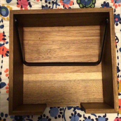 This is a perfect solution for the inevitable stack of takeout napkins. I initially thought I’d remove the metal bar, but it’s actually a perfect weight for keeping the napkins in place but allowing a single napkin to be removed. Looks beautiful on the counter and being a bit more organized brings me some peace.