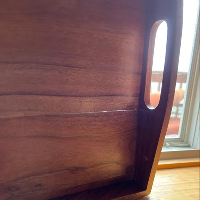 Beautiful! And a great value at this price point. The wood is stained a gorgeous color and so smooth to the touch. Perfect for setting on our oversized ottoman or for serving. Don’t hesitate on this purchase.