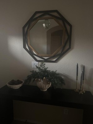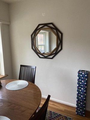 This mirror looks great and is well made. It is very heavy. The hexagon shape is not a traditional shape you think of for a mirror and it works really well in my entry way on a wall that is and angular as the open stairway and rails are above it. I couldn't be happier, especially for the price!