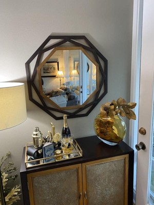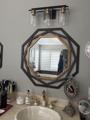 Uttermost Two Tone Octagonal Vanity Decorative Wall Mirror Rustic Golden Bronze Iron Openwork Geometric Frame 32" Wide for Bathroom Bedroom Entryway