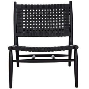 Introducing the Soleil Leather Woven Accent Chair in Black Leather and Black Frame. This chair effortlessly combines sophistication with comfort. Crafted from cowhide leather and supported by sturdy Sungkai wood, its design is both sleek and inviting. The deep black hue provides a modern yet timeless appeal, making it a versatile addition to any space. The woven leather detailing on the seat and back offers a unique texture that enhances its visual interest. Whether you are looking to elevate a living room, bedroom, or office, this chair fits seamlessly with various decor styles. Embrace style and comfort with the Soleil Leather Woven Accent Chair, where contemporary design meets classic craftsmanship.