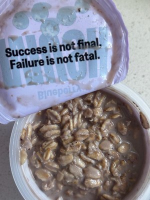[This review was collected as part of a promotion.] I absolutely love this overnight oats- they are ready to eat right away, which makes them super convenient and delicious. The blueberry flavor is bursting with real blueberry taste, and the best part is that there’s no added sugar! It’s a perfect choice for anyone who’s health-conscious and mindful about what they eat. I also appreciate the inspirational phrases inside the package- they’re such a nice touch for a little morning motivation.