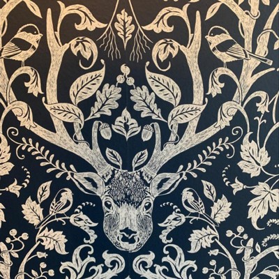 NuWallpaper Escape to the Forest Peel & Stick Wallpaper Navy: Removable Vinyl Botanical Forest Animals, Self-Adhesive