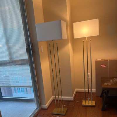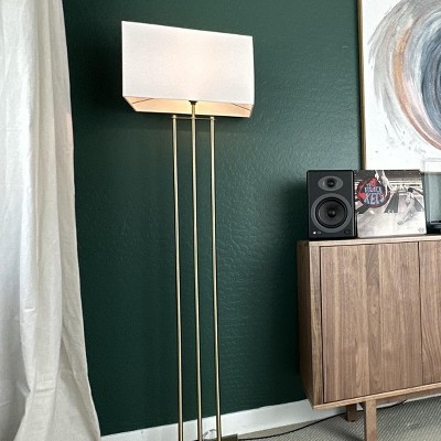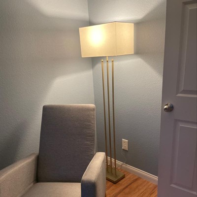 62" Soho Floor Lamp with Linen Shade White - Globe Electric: Modern Gold Metal Base, Square Shade, 60W Max, E26 Socket