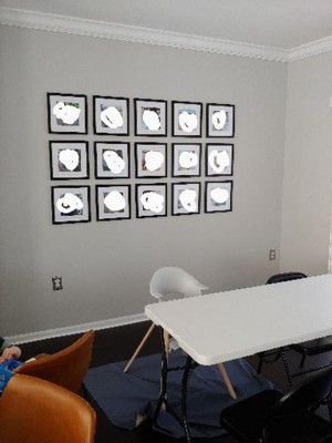 Turn an empty wall into a your own gallery space to showcase your most adorned moments with our 9 Piece Wall Gallery Frame Set. This all in one gallery frame kit makes creating the gallery wall of your dreams fast and painless. Use the frame templates included to design your layout by taping them to the wall first. Leave the hammer and measuring tape behind, no tools or extra hardware required. Simply slide the Instapoints pins in the frame, place the frame into the desired position over the template, press the frame into the wall and tear the template away. Arrange your favorite memories with nine sleek black gallery frames that complement contemporary and modern decor and add a stylish contrast to rustic décor. Each frame includes a bright white mat for an 8" x 8" that can be removed to frame a 12" x 12" image. Instapoints pins can be used both vertically and horizontally if desired. This frame set will help you arrange a beautiful gallery wall to show off your photos or add a fresh look to any room with the set of decorative art prints included with each frame.