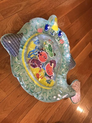 This is a fun way to interact my child for tummy time. He loves playing with it, and watching the floating animals. Colors are vivid. Easy to fill the air on the outer part and easy to fill & empty the water. I have received this item from Infantino to facilitate my review.
