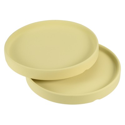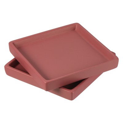 - Set includes four ceramic planter saucers