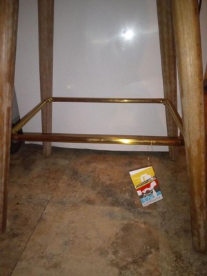 [This review was collected as part of a promotion.] What a pretty surprised so happy to have gotten these 2 set stools super pretty the wood do natural the seat has cushion so it makes it comfortable. Putting it together was so fast and easy took me 15 min. Color of the cushion and wood are so pretty and the gold foot holder at the bottom is so cute. Thank you
