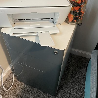 The two top drawers are ok for storing supplies, but the bottom drawer is useless. The files get stored side to side (not front to back like most file cabinets) which is awkward. The bar that the files hang from is wonky so the files do not slide properly. The key has to be inserted in order to open the drawers. I am going to buy something else and I do not know what to do with this cabinet.