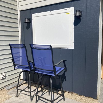 Are you tired of eating dinner at the kitchen and dining room table? Get some fresh air and have the family meet you outside to enjoy your meals on these swivel patio stools. The seats are wrapped in a lightweight textilene material with its waterfall edge offering unparalleled comfort. Patio stools are becoming a popular choice to furnish outdoor living spaces. This collection includes a set of 2 patio bar stools to be placed around your bar height table. For your convenience, the stools swivel a full 360 degrees to be accessible from any angle. Beautifully crafted arms ease the pressure from your upper body as you hold your beverage or rest in a natural position. You'll enjoy casual meals, birthday parties and laid-back chats with friends all year round with these rustproof galvanized steel stools. Purchase this set of 2 patio swivel bar stools for your outdoor entertainment space. Additional Features: Rustproof Galvanized Steel Frame, Pair with our Metal Indoor-Outdoor Bar Height Table, Bar height chairs provide versatile outdoor dining exchanges - balcony, backyard, garden, and more