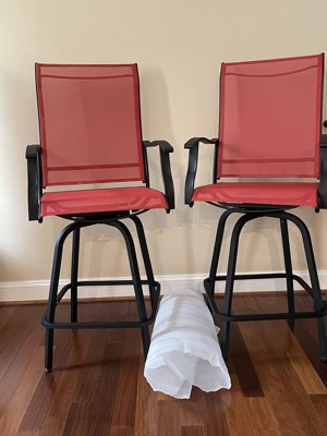 [This review was collected as part of a promotion.] Thesh Furniture - Valerie Patio Bar Height Stools Set of 2, All-Weather Textilene Swivel Patio Stools with High Back & Armrests in Red is s perfect addition to a patio. To have the chairs swivel is great feature.