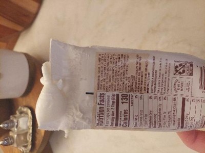 As soon as i squeezed the tub the top broke open and frosting was coming out both sides, huge mess and i couldn’t use it.