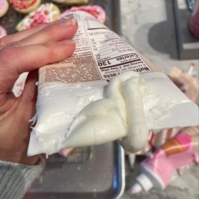 We couldn’t get it out of the bag! It was so thick and eventually I ended up using my full adult strength to push it out, but my teenagers couldn’t even budge it. The worst frosting ever! Huge waste of money!