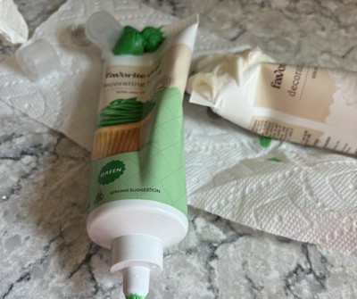 Tastes awful and won’t come out of the bottle as intended. Squeezed it out into a frosting bag instead. Buy a container or make your own, don’t waste your money.