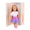 - Bow-themed fashion gift box set: put a bow on fun fashion and discover bright styles with Our Generation doll Thea, 3 changeable outfits, and jewelry accessories!