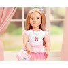 Put a bow on fun fashion and discover bright styles with Thea! This Our Generation Fashion Starter Kit features 3 changeable outfits with bow-themed styling pieces to accessorize each look. Thea has lovely hazel eyes that open and close, and her long, brushable blonde hair is fun to style! Unpack Thea's outfits and start mixing and matching. Then add the sparkling accessories to wrap up her stylish look – including a cute charm necklace, sunglasses, pretend nail polish, and bow-themed purse. It zips open to carry items on the go! Give Thea’s hairstyle a touch of color with the lilac hair extension. Or accessorize her braids, twists, updos, and ponytails with the pretty pink hair bow! Need a little inspiration? Open up the styling booklet and present Thea in 3 cute themes, from Casual, Party Passion, and Fancy celebrations! Outfits and jewelry feature easy-open closures to quickly put on and remove, so you can make Thea shine bright on every adventure!