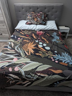 I have the Full/Queen Iveta Abolina Biophilia Desire Duvet Set Green - Deny Designs. I didn't think I would like the dark green color, but it works good. I got it for my grandson who just moved in. He's going to be with me his first year of college. He likes it. The material is nice and the colors fit in with everything else in the room. The design kinda reminds me of pictures of the jungle on tv.