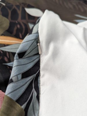 I love the woodsy floral pattern and feel of the duvet and pillow shams. The material is soft and light, but it’s also a little on the thinner side. The shams have the center back opening to insert the pillow which is great because it helps keep the pillow case in place on the pillow. The zipper on the duvet looks like a good quality and slides open and closed with ease and It’s sewn so that it’s almost hidden when zipped which is a nice feature (plus the zipper is a huge improvement over a button closure duvet which I’ve had before and are a pain!). My only complaint is that I wish the backing was not white, it would be so much better as a solid green or black. The white underside of the duvet and pillow case is thin so if you are using a patterned comforter inside the duvet then you’ll likely see the pattern through the white material. Overall it’s a nice duvet with a good closure and super cute forestry floral pattern, but could be improved by changing the underside color to any color but white.